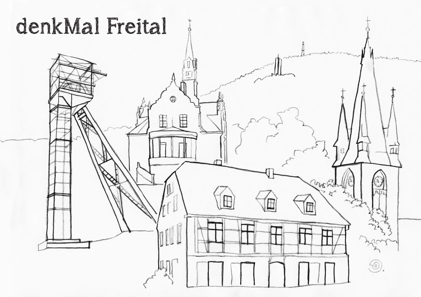 Die Postkarte Nr. 6 “denkMal Freital” befindet sich in der Verteilung. Eine Ausmalkarte für Jung und Alt. (Illustration Olaf Stoy / Mitwirkung: Anne Konstanze Lahr & Vereinsmitglieder )